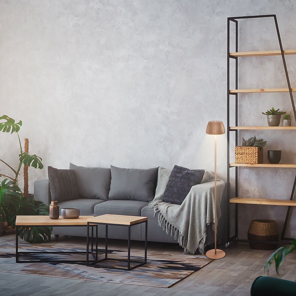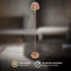 Led stoječa, talna akumulatorska svetilka s koračno zatemnitvijo, kavne barve
