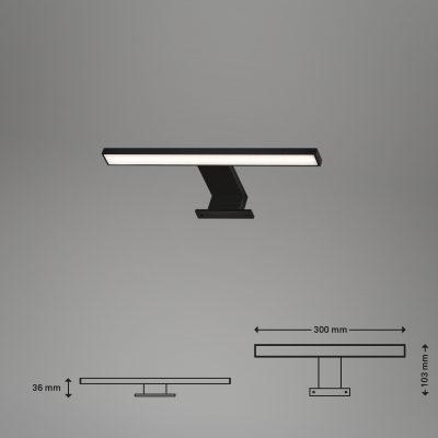 - LED lučka za ogledalo v plastiki/črne barve je odlična izbira za sodobno kopalnico. Omarna svetilka je privlačna in elegantna. LED plošča z močjo 5 W in svetilnostjo 500 lumnov zagotavlja svetlo, nevtralno belo svetlobo, ki je idealna za popolno osvetlitev pri nanašanju ličil ali britju. Druga velika prednost te LED zrcalne svetilke je njena dolga življenjska doba 25.000 ur.