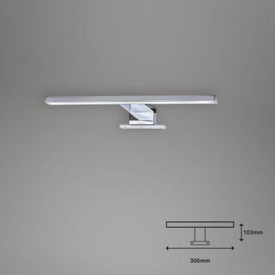 - LED lučka za ogledalo v plastiki/krom barve je odlična izbira za sodobno kopalnico. Omarna svetilka je privlačna in elegantna. LED plošča z močjo 5 W in svetilnostjo 500 lumnov zagotavlja svetlo, nevtralno belo svetlobo, ki je idealna za popolno osvetlitev pri nanašanju ličil ali britju. Druga velika prednost te LED zrcalne svetilke je njena dolga življenjska doba 25.000 ur.