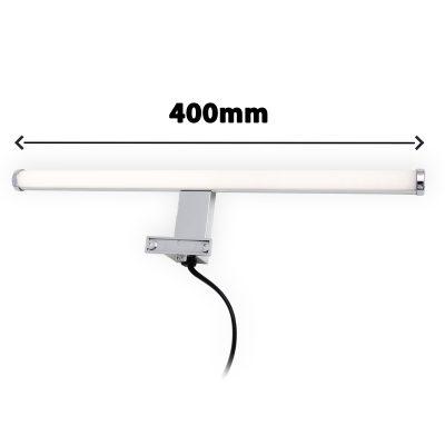 - LED lučka za ogledalo v plastiki/krom barve je odlična izbira za sodobno kopalnico. Omarna svetilka je privlačna in elegantna. LED plošča z močjo 6W in svetilnostjo 600 lumnov zagotavlja svetlo, nevtralno belo svetlobo, ki je idealna za popolno osvetlitev pri nanašanju ličil ali britju. Druga velika prednost te LED zrcalne svetilke je njena dolga življenjska doba 25.000 ur.