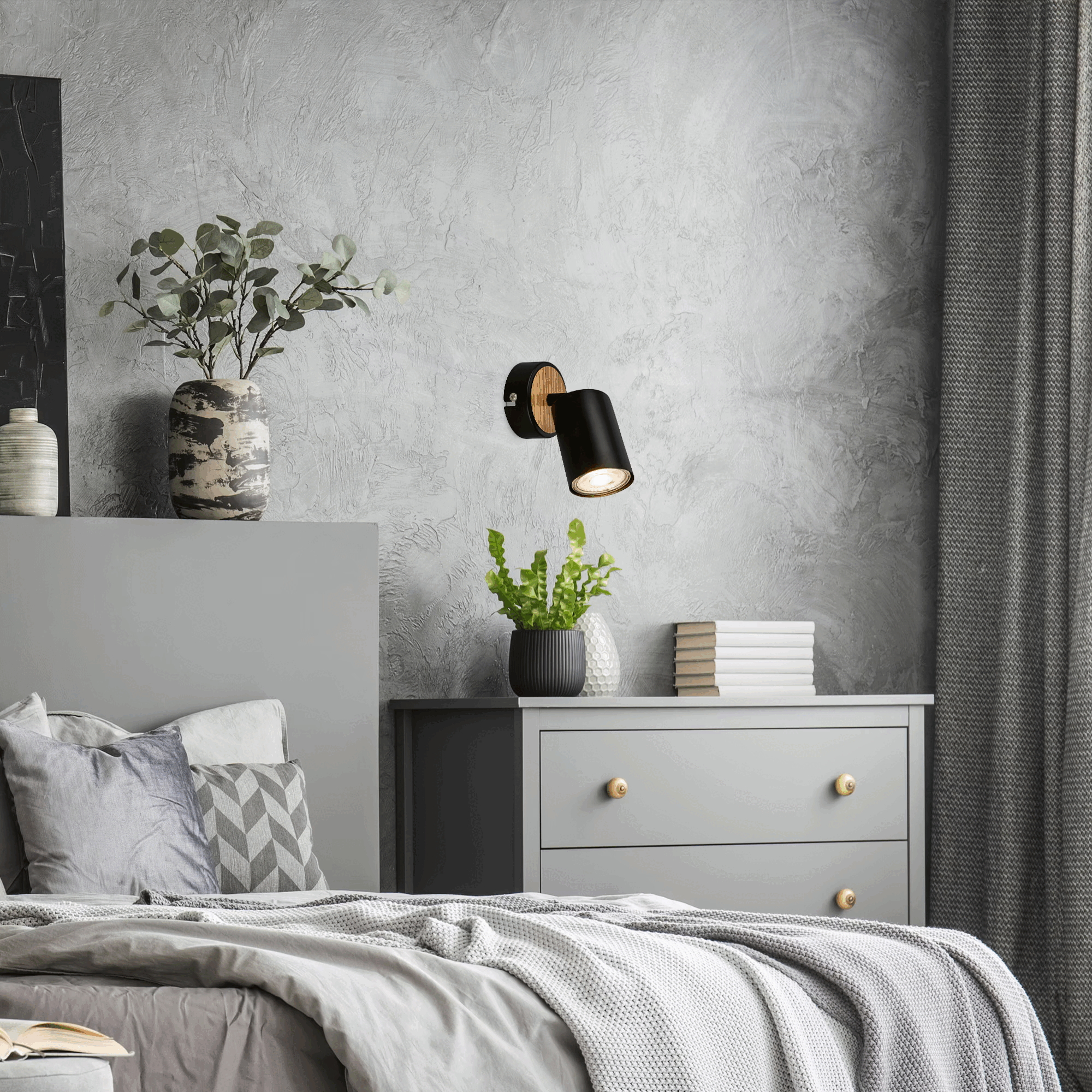 Led reflektor, stenska svetilka, črne barve z lesenim poudarkom