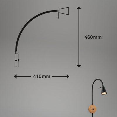 Led stenska svetilka s priključnim kablom in stikalom, ob postelji – črne barve in lesen okvir