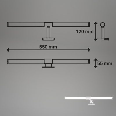 Dimenzije, ki prihranijo prostor, s kompaktnimi merami 300x120x55 mm se nadometna luč harmonično prilega vsakemu ogledalu ali omarici z ogledalom.