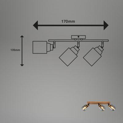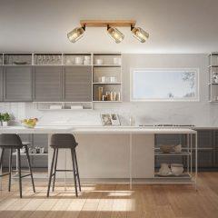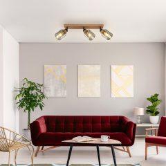 Reflektor, stropna svetilka, kovina+les, dimljeno steklo