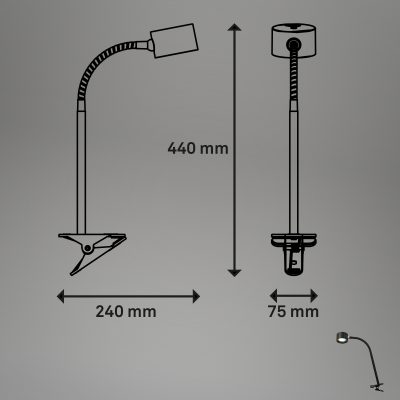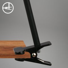 Baterijska, akumulatorska polnilna svetilka s ščipalko in koračno zatemnitvijo – črne barve