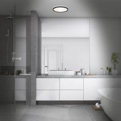 - Osvetlitev ozadja te moderne stropne kopalniške LED svetilke s črnim okvirjem zagotavlja čudovit, indirektni svetlobni učinek na vašem stropu