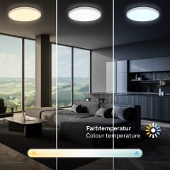 Kompaktne dimenzije, s premerom 330 mm in višino 60 mm je ta LED svetilka idealna za različne prostore, vključno s spalnicami in dnevnimi sobami.