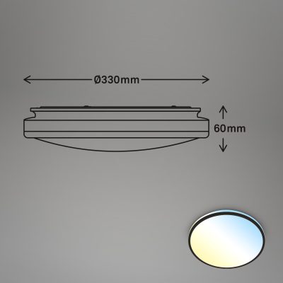 Kompaktne dimenzije, s premerom 330 mm in višino 60 mm je ta LED svetilka idealna za različne prostore, vključno s spalnicami in dnevnimi sobami.