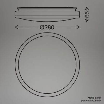 Kompaktna zasnova za majhne prostore, s premerom 280 mm in višino le 65 mm se stropna razsvetljava prilega tudi manjšim prostorom ali območjem z omejenim prostorom. Ponuja elegantno in funkcionalno rešitev za kompaktne prostore.