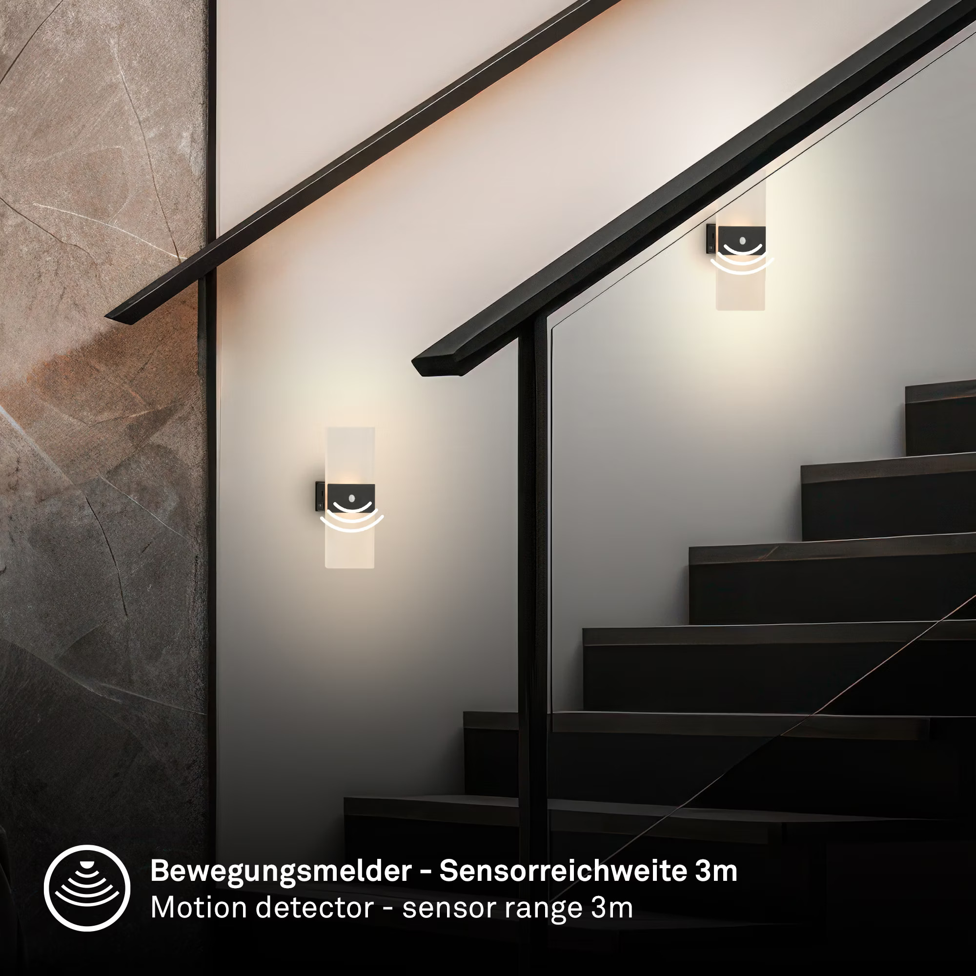 - Samodejno upravljanje s senzorjem, zahvaljujoč integriranemu senzorju gibanja in mraka se stenska svetilka aktivira po potrebi. Z dosegom 3 m in kotom zaznavanja 120° zagotavlja učinkovito upravljanje svetlobe.
