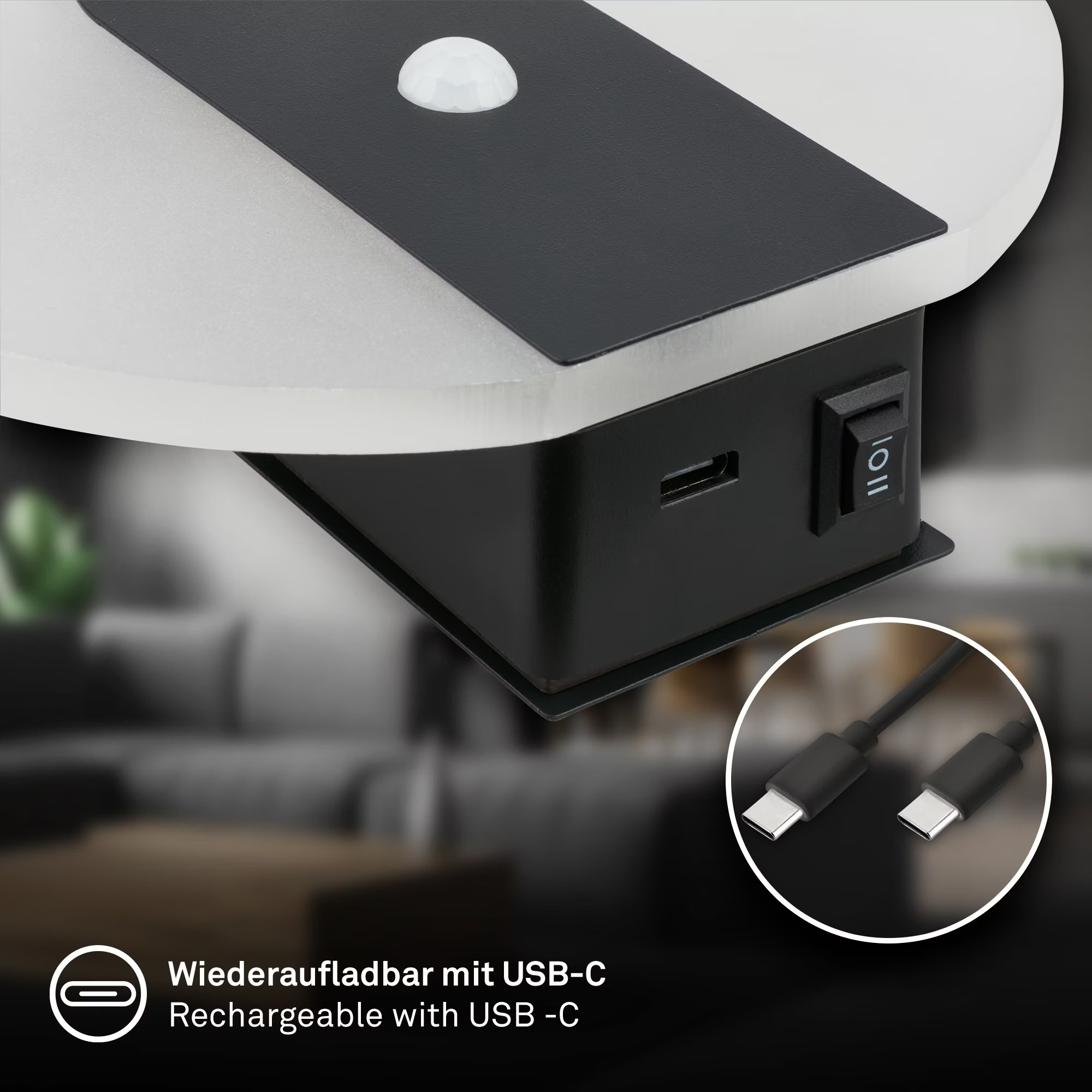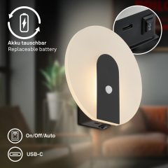 Stenska svetilka brez vrtanja, senzorska, magnetna, akumulatorska, črne barve