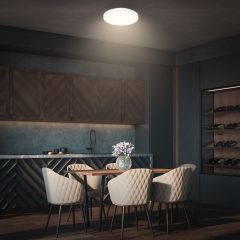 Kompaktna zasnova za vsestransko namestitev, s premerom 240 mm in višino le 60 mm se ta kuhinjska svetilka odlično prilega manjšim prostorom. Zaradi svoje prostorsko varčne zasnove so idealni za prostore z nizkimi stropi ali omejenim prostorom.