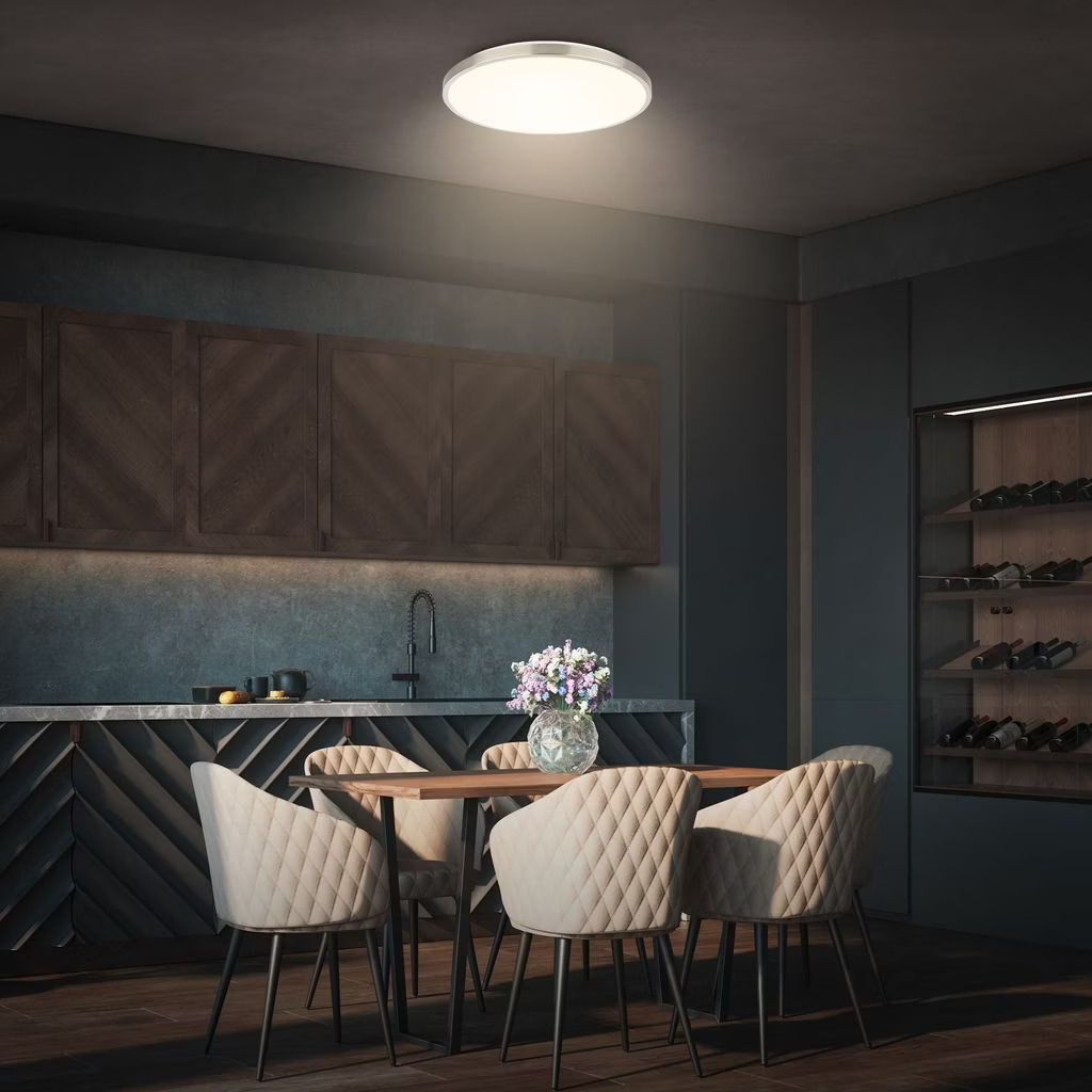 Kompaktna zasnova za vsestransko namestitev, s premerom 330 mm in višino le 60 mm se ta kuhinjska svetilka odlično prilega manjšim prostorom. Zaradi svoje prostorsko varčne zasnove so idealni za prostore z nizkimi stropi ali omejenim prostorom.