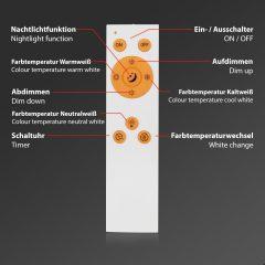 - posebne lastnosti: s priloženim daljinskim upravljalnikom je mogoče zatemniti svetlobo dnevne sobe in barvno temperaturo (toplo belo do hladno) , 3.000 – 6.400 Kelvinov) so nadzorovani (brez spominske funkcije)