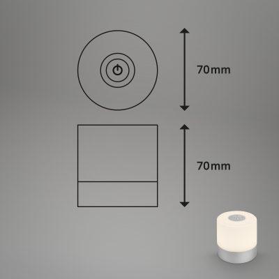 - Mat krom mini namizna svetilka deluje na baterije in jo lahko postavite kamor koli v hiši kot mobilno luč. Čas osvetlitve je do 15 ur pri nizki stopnji zatemnitve s časom polnjenja 2,5 ure. Mini otroška svetilka je visoka 7 cm, ima majhno zasnovo in jo lahko postavite skoraj povsod.