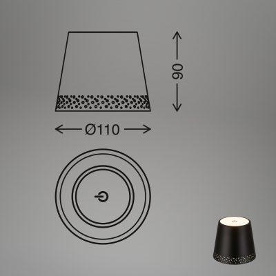Baterijska, akumulatorska polnilna namizna svetilka s koračno zatemnitvijo – črne barve