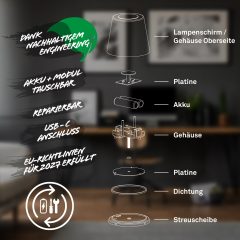 7502015 Baterijska, akumulatorska polnilna namizna svetilka s koračno zatemnitvijo 4W-500lm-2700K