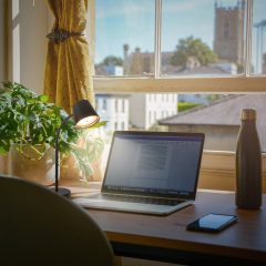 Baterijska, akumulatorska polnilna namizna svetilka s koračno zatemnitvijo – črne barve