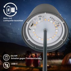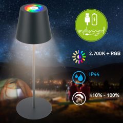 7510015 Baterijska, akumulatorska polnilna namizna svetilka s koračno zatemnitvijo 3v1 IP44-2,5W-200lm-2700K + RGB