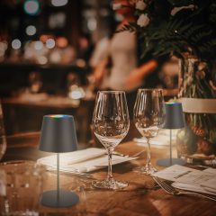 Baterijska, akumulatorska polnilna namizna svetilka s koračno zatemnitvijo 3v1 – črne barve
