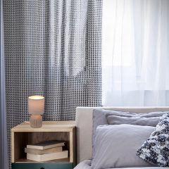 - Privlačna optika, ta svetilka iz blaga navdušuje z elegantnim keramičnim podnožjem v toplem rjavem odtenku in ujemajočim senčnikom iz blaga, ki vsakemu prostoru daje vabljivo in prijetno vzdušje.