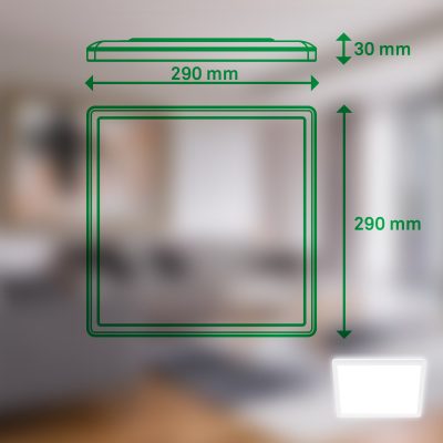 Izjemno tanek dizajn, ta kuhinjska svetilka je posebej ravna z višino le 30 mm in dimenzijami 290×290 mm, kar omogoča elegantno in diskretno montažo na strop.