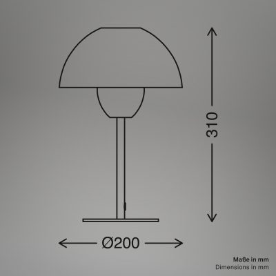 Kompaktne in prostorsko varčne dimenzije, z dimenzijami premera 200 mm in višine 310 mm je namizna svetilka idealna za manjše prostore. Hkrati pa postavlja elegantne poudarke v sodobnih konceptih notranje opreme.