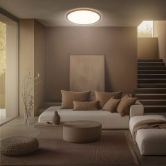 - Kompaktna in diskretna zasnova, s premerom Ø375 mm in višino le 45 mm se svetilka za spalnico brezhibno prilega prostorom z nizkimi stropi ali minimalističnim bivalnim slogom.